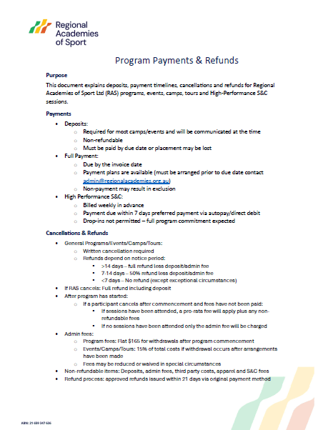 Program Payment & Refund Policy